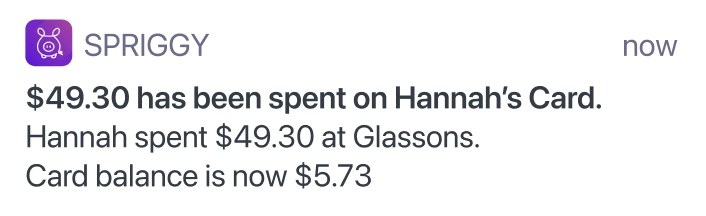 A card of their own that lets you stay in control, with real-time spending notifications and preset unsafe merchant restrictions.